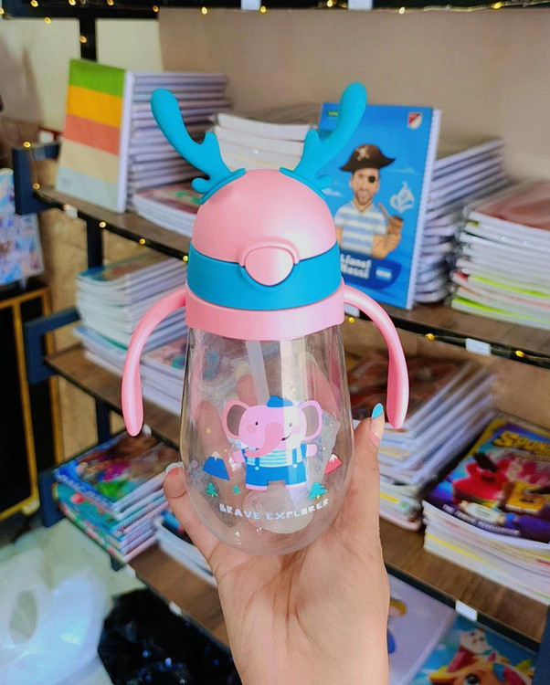 قمقمه استوانه ای نی دار شاخ گوزنی دارای بند و با حجم 500 میلی لیتر عرضه شده است. این قمقمه های شاخ گوزنی باکیفیت و کیوت با بندی که داره میتونه همیشه همراه خوبی باشه. از پلاستیک باکیفیت ساخته شده و درب این قمقمه ها کلید داره که با فشار دادن دکمه ستاره شکل، درب به بالا میپره و حالا آب رو با نی نوش جان کنید.